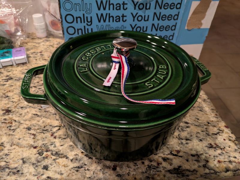 I'm a huge fan of Staub cookware and simply adore this pot! the 4qt size is perfect for my husband and I, and big enough to have leftovers. It's the usual great quality, the grenadine color is rich and so beautiful, the lid is a good, tight fit. I changed out the knob for the handsome cow knob and it such a fun addition! Everything about this pot is wonderful and I can't wait to make many delicious recipes in it.