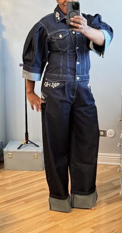 So cute. I love the rhinestones and the sleeves. I bought the jacket in a medium and it fit snug so will return and try large. The quality is good.
