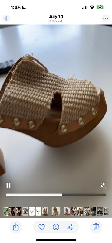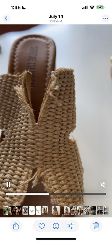 The shoes are so cute and are comfortable. I found that they were true to size. However, I was sent a box with a sticker for “floor model” and one of the shoes was in perfect condition and the other was severely damaged. Strings sticking out, smashed form, and damage to the raffia. So disappointed. I have never been sent used shoes before. I had much higher expectations from Bloomingdale’s. I assumed I’d receive brand new shoes, not something unwearable and damaged at full price.