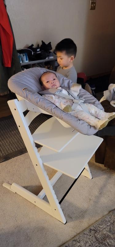 My 5 day old baby already loves his chair! We put him in it when we’re hanging out on the couch and want him nearby us. It’s super compact and comfy for him - he always seems content when snuggled in his chair. We also bring it to our dining room table so he can sit with us while we eat dinner. I’m so excited that this chair will grow with him. Can’t recommend it enough - the quality is incredible, it’s super sturdy and makes us feel like our baby is safe, and he is well supported and comfy.