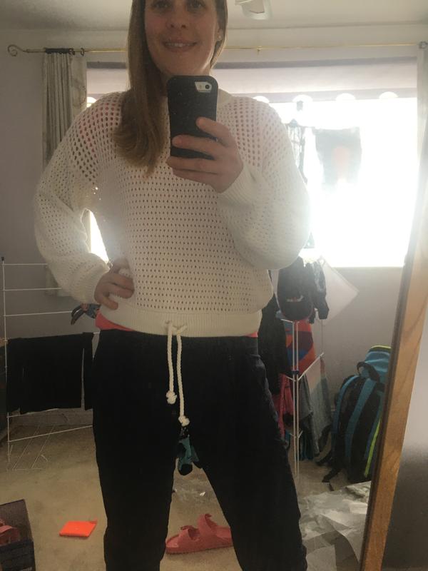 Love this jumper. Now have four of them in different colours. Looks great over leisure wear to the gym but also over other clothing. i wear mine with dresses and jeans and its perfect for cooler summer days & nights.