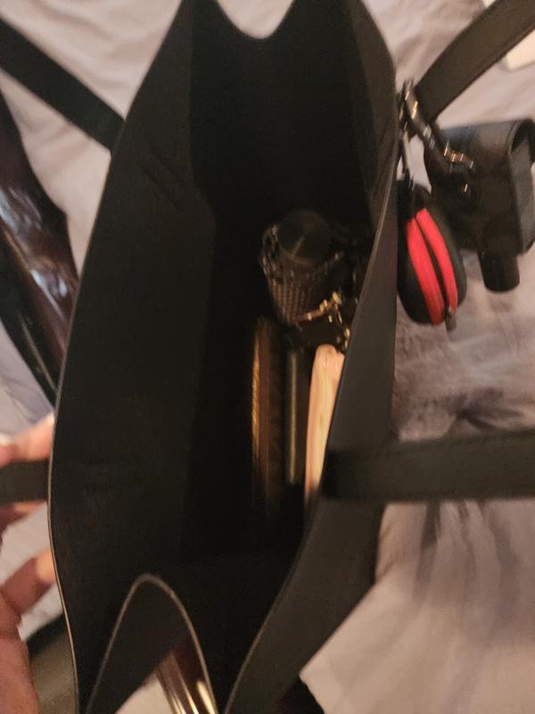 When I first took out of box my first thought was, too narrow I'm probably going to return. I took it home and placed my stuff inside and thought it was a little cramped. But as I looked for items it was actually perfect. The minute you pull it open you can see items without having to search or feel around like most totes. It's size keeps everything in place. Strap is a perfect length. Stays put on shoulder. The only downfall was no inner pocket. A small inside pocket for keys would be nice.