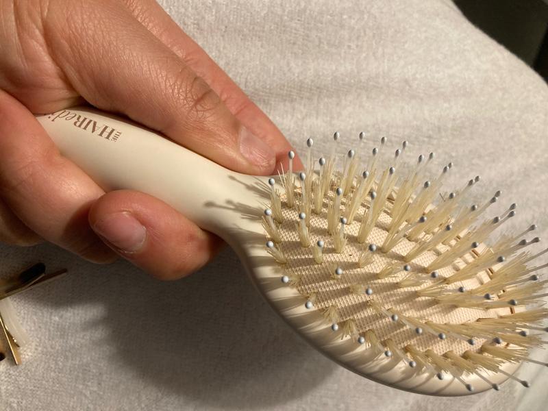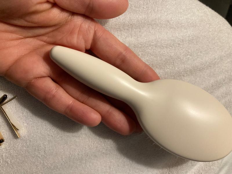 Love the brush. Feels very nice on the scalp. Maybe a bit too small and awkward to hold