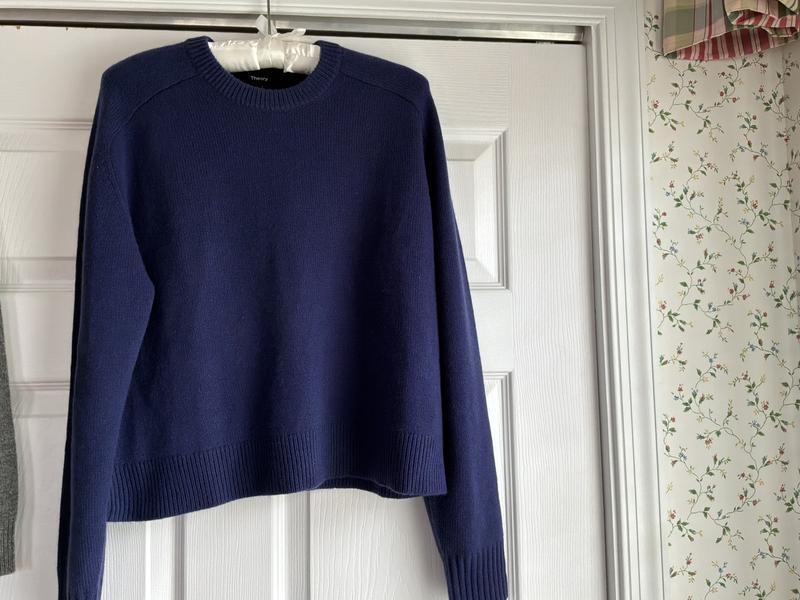 Great Theory sweater. Theory has great cashmere sweater designs! My closet has several. This purple cropped pullover is adorable. It fits comfortably and the color is beautiful.