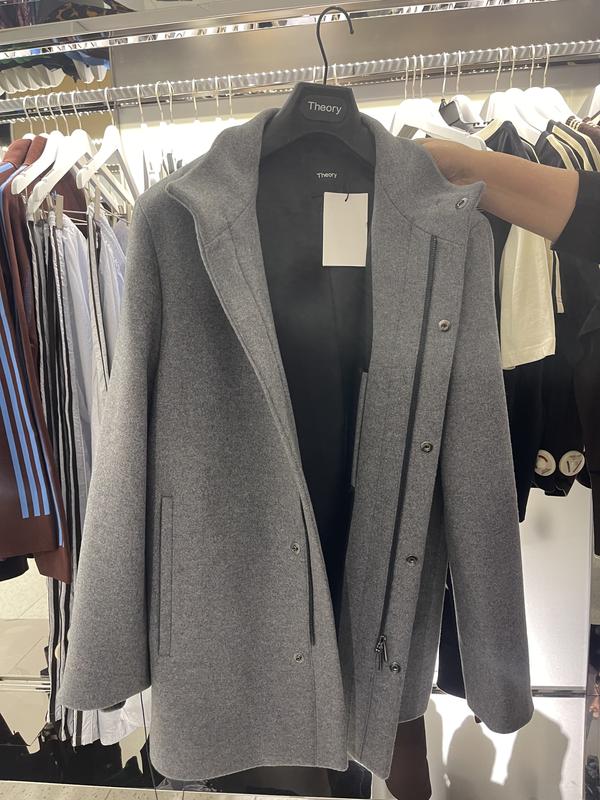 Coat is great quality and the melange color looks even better in person. Collar can be folded down for a different look when not fully zipped up. Definitely recommend!