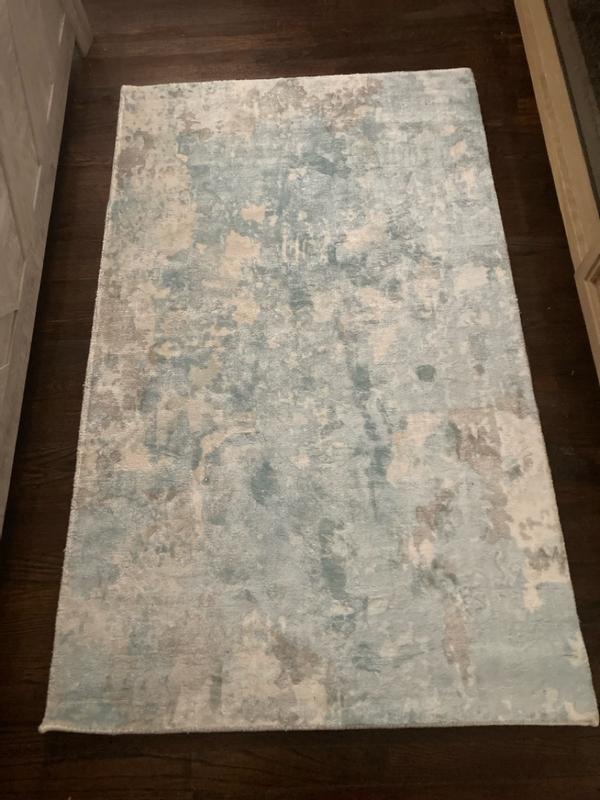 This rug adds a subtle elegance with its soft blue tones and abstract pattern. Perfect size and quality for a cozy space! Looks and feels high end - definitely recommend