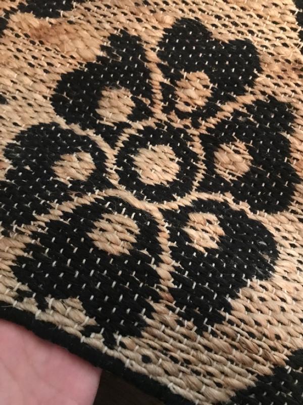 I absolutely love the jute rug. It seems to be well made and looks fairly durable. I really like the pattern. Although it’s simple and neutral, it really stands out. I don’t have it in high traffic area so not sure how long it will last, but it appears to be well made