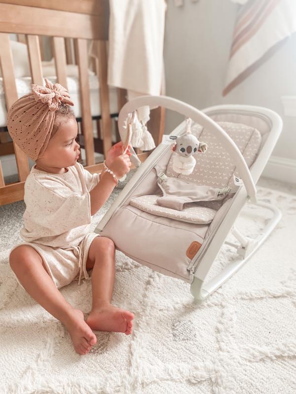 Our daughter is about 3 weeks old and LOVES the Boho Chic 2 in 1 Rocker!