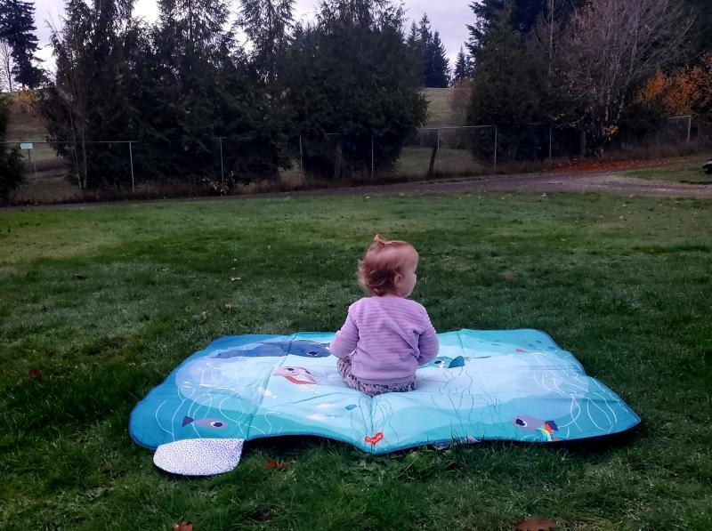 Absolutely love this mat! Super cute! It's perfect for outside because of the material! And we love the little activities that are attached to the mat!