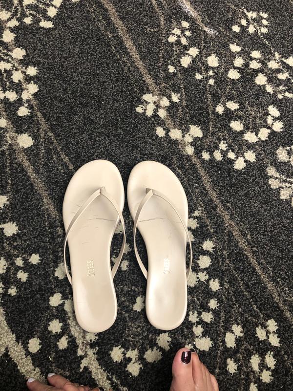 These Tkees are one of my favorite flip flops to wear during warm days. They are casual but are cuter than the average flips flops. I wear them with my summer dresses. And the padding in them make them quite comfortable. I've never had issues with the straps rubbing which sometimes happens with flip flops.