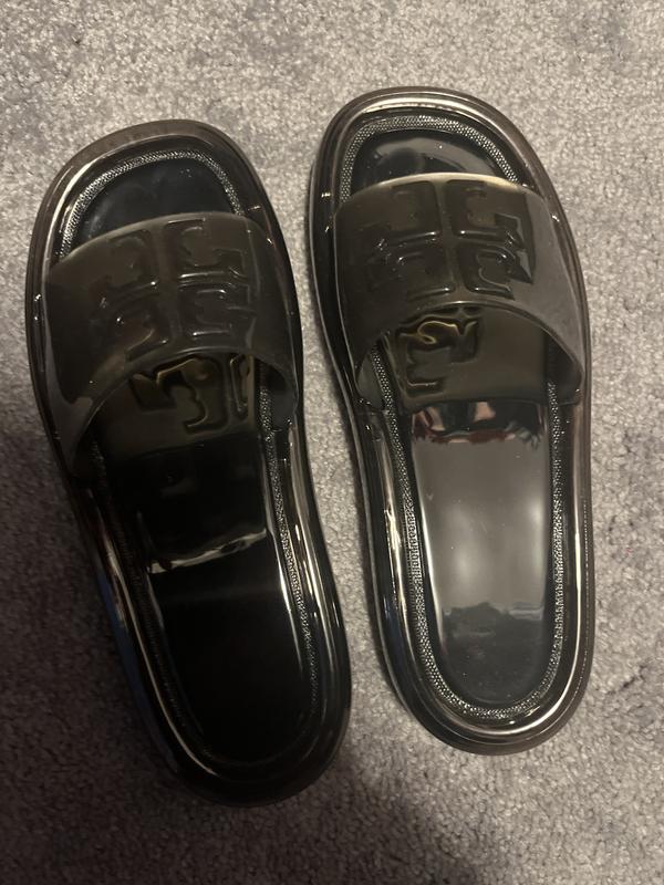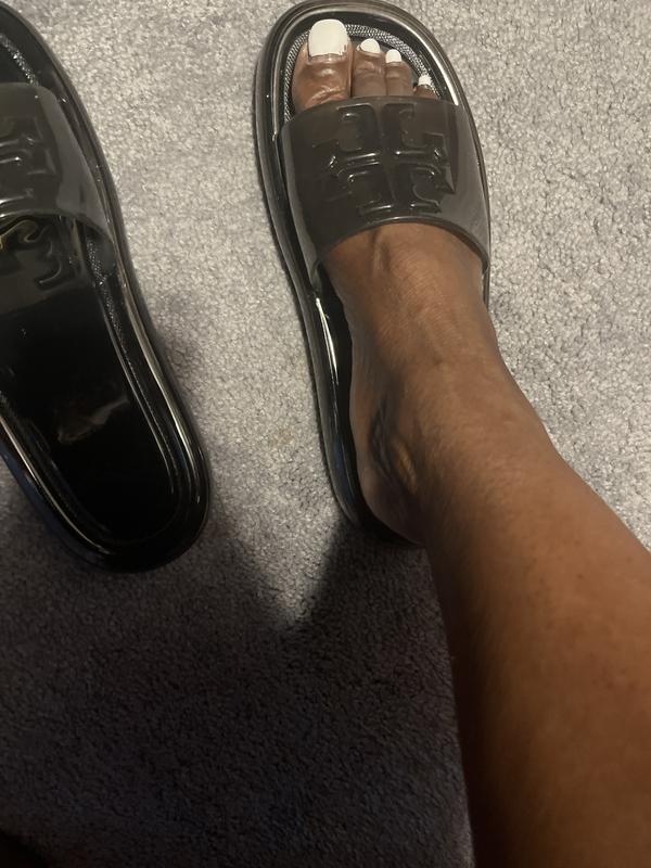 My blue dew bubble jelly slides fits perfect. I rocked them with a denim romper and my TB fanny pouch.