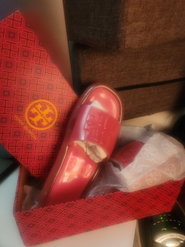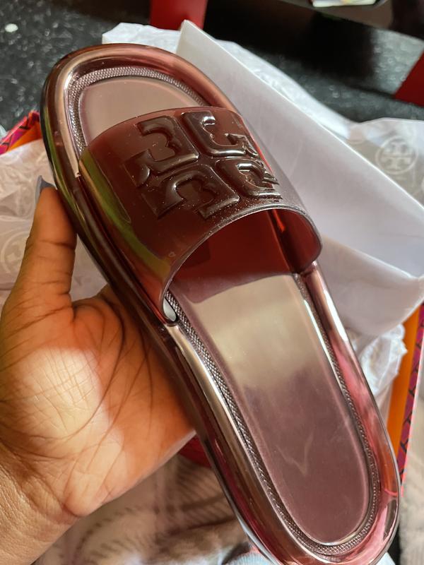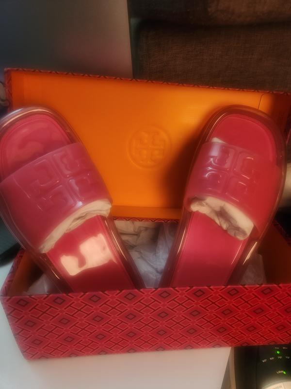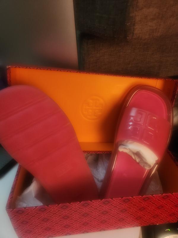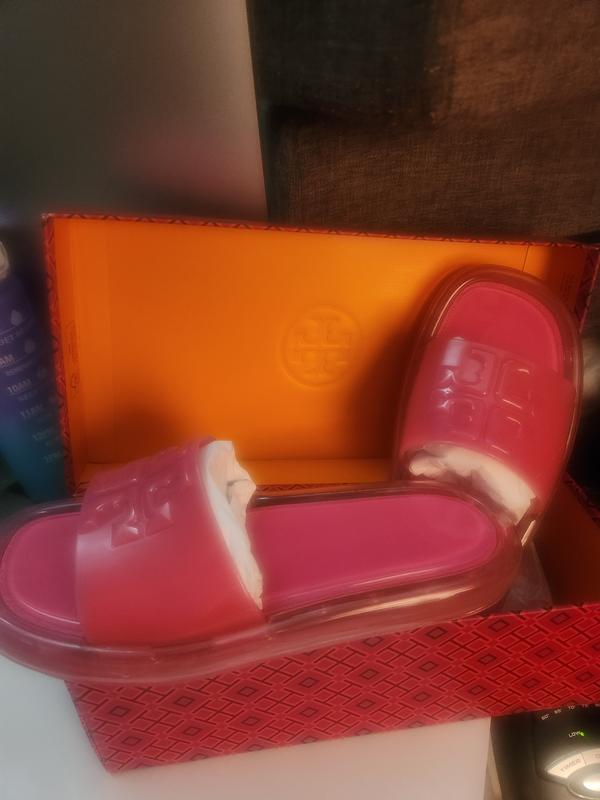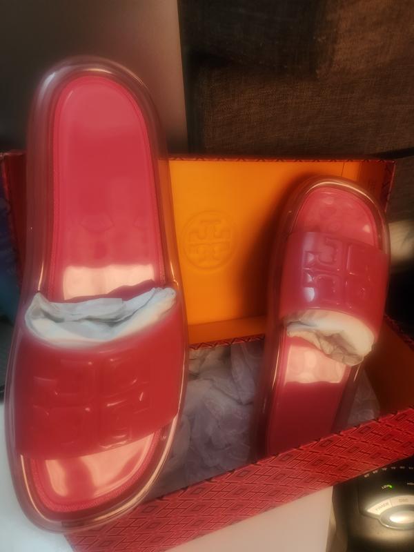 My blue dew bubble jelly slides fits perfect. I rocked them with a denim romper and my TB fanny pouch.