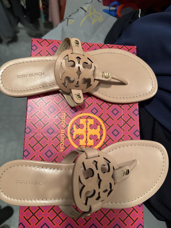 I’m a true 7.5, but in the leather miller sandals and metal emblem miller sandals I wear an 8. In any of the patent millers I’ve had to size up to 8.5 and they fit perfectly. Love that the Tan color goes with everything.
