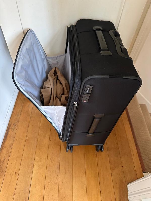Great suitcase - smooth roll even when xtra fully packed. Good size for a 5 day trip, easily packed and love the front pockets. The luggage tag design in the back is bad tho, gets caught on things when you check it. We have 3 different pieces and 2 came back damaged when they were checked, one even tore a bit. We won’t use the tags as they cane - we pulled them out of the holders, taped the holder down so it won’t get caught again, and attached the tags to the handles. Also, the straps on the inside are a little wonky to tighten, but manageable. Otherwise, it’s a great suitcase. Love the color.
