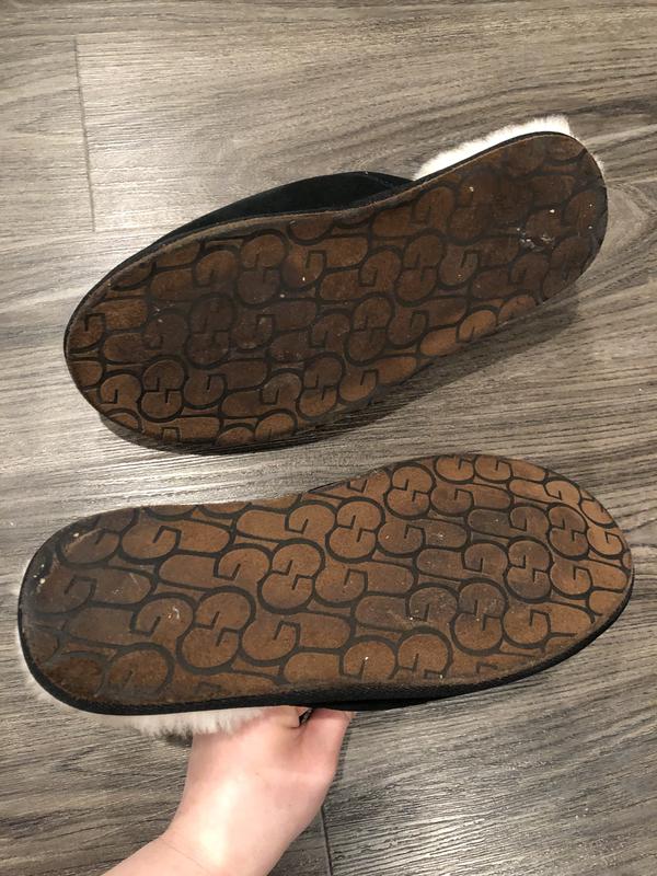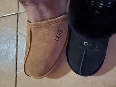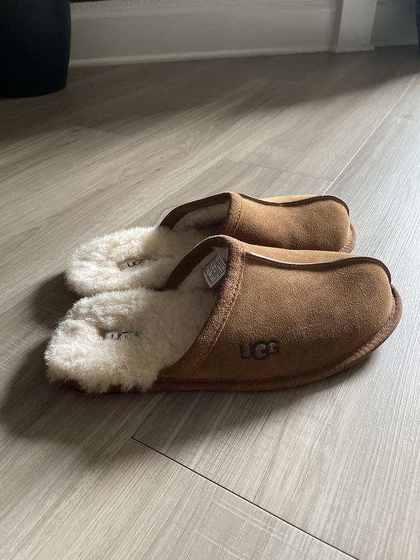 I prefer scuff slippers without a lot of fur around the top of the shoe, so I buy the Ugg men’s scuff size 7 which fits my women’s size 9 perfectly. The leather/suede stays nice with an occasional leather cleaner and brushing. My wood floors are very cold in winter and I wear my scuffs around the house year round. I keep several pair in various colors so as not to wear out the sheepskin lining too quickly.
