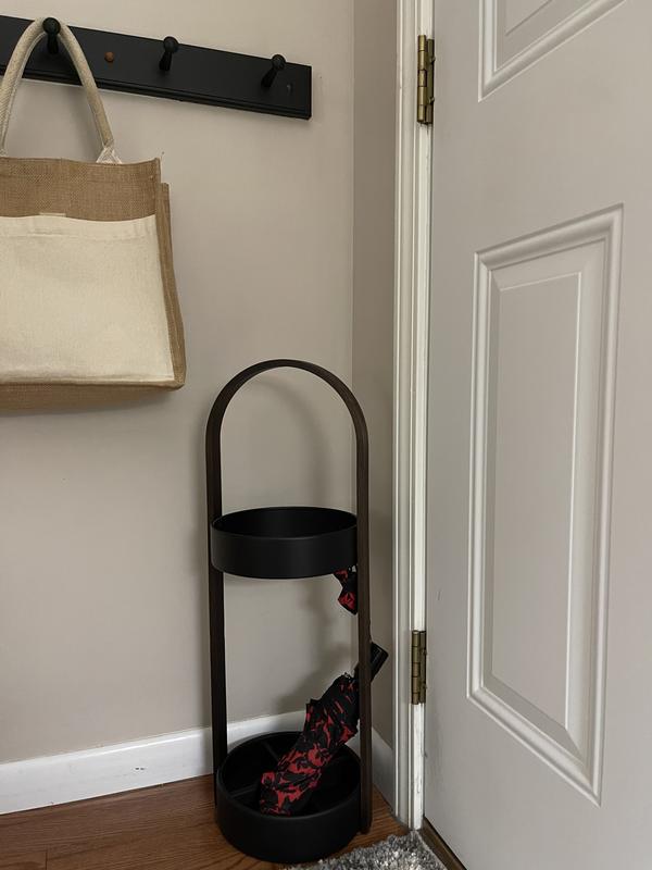 We just moved to Victoria from the Prairies. We needed an umbrella stand. I choose the Umbra, I like their products. The accent of Walnut with the Black goes perfectly with our coat rack…that is Black with Walnut knobs. Very well made, we will have it for years….Love it! ,