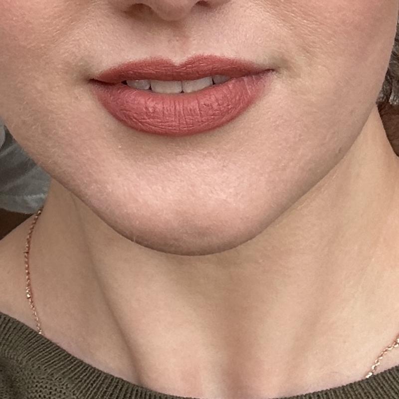 This is truly the comfiest matte lipstick I’ve ever tried. It’s not drying or sticky and it doesn’t settle into fine lines. It moves with my lips and remains flexible and weightless.