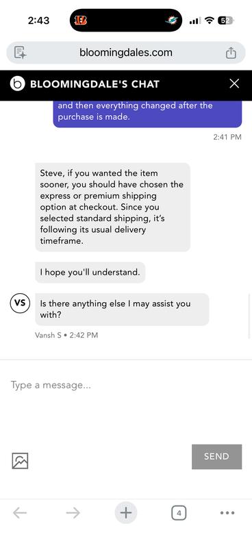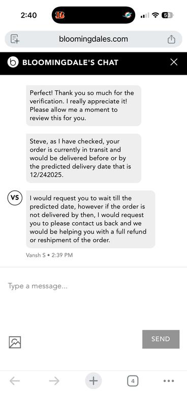 This review is not about the perfume. This review is the poor business practice of Bloomingdale's. I purchased the perfume online and chose to have it delivered because the expected delivery date would be the 23rd. Entered all of my details everything remained the same. I completed the purchase and two days later. It finally was shipped with an expected delivery date of the 27th. Two days after Christmas. Then I started a chat with their customer service and it is clear that Bloomingdale's does not have a car in the world for customers or their satisfaction. They are strictly here to make sales. I even included some of the lesson satisfactory replies from their representative. Bottom line, if customer service is what you seek, take your business elsewhere.