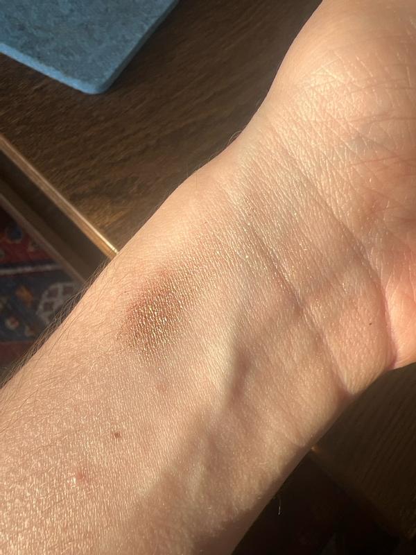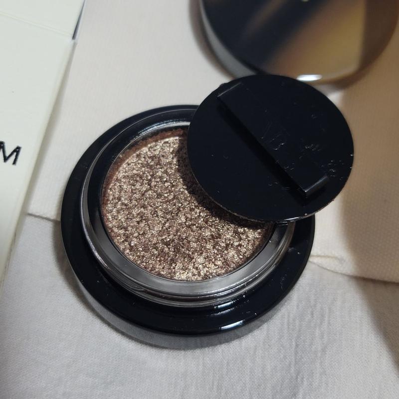 The texture is pleasant and the colour sublime. What's more, it's long-lasting, so I'm delighted with my purchase! ❤️ The result is amazing! It's very easy to put on and the hold is perfect. I only tested it for a short time because of the heat, but the 2-day test was conclusive. Very good hold, perfect colour that spreads with a brush or finger. 10/10. You can superimpose layers to go from a washed-out effect to very intense glitter. It's best to leave the second lid on to prevent the product from drying out, because there's a lot of it! Of particular note is the packaging, always very luxurious and with a substantial weight at VB :-) I picked up Honey colour , which is a gorgeous brown with gold glitter. It illuminates the eyes and the intensity can be modulated.