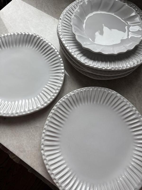 Love these plates! The irregular shape feature is fun and relaxed yet the striped pattern unifies them.