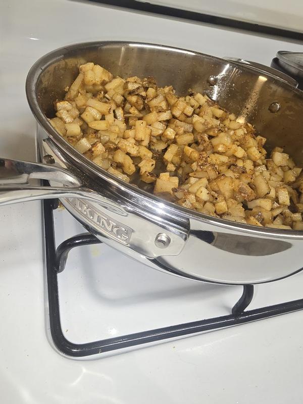 The **Viking Cutlery 3-Ply Stainless Steel 10-Piece Cookware Set with Metal Lids** is an investment for any kitchen. The 3-ply construction distributes heat, but food still had hot spots and inconsistent cooking results whether you’re searing, simmering, or sautéing. The stainless steel finish looks sleek and professional but clean up food sticks to the botom. Th metal lids fit snugly and universal but the handles can get kind of warm, be careful. Overall, Viking delivers quality products, with some room for improvements.