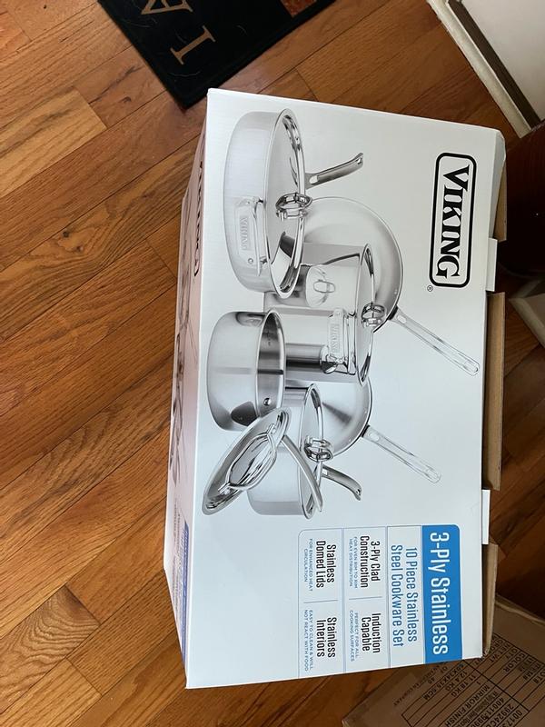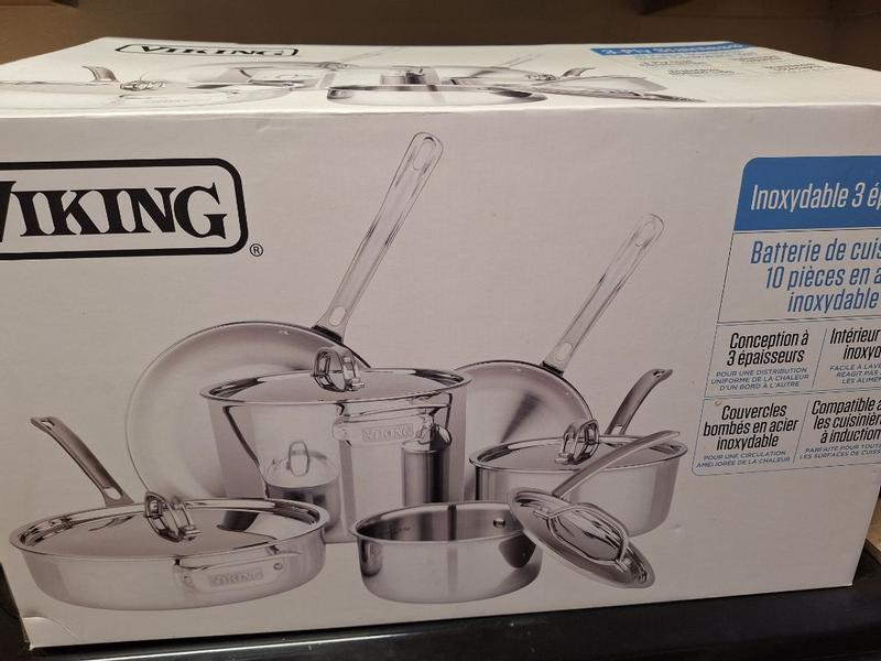 This high end 10 piece culinary set from Viking is every home cooks dream. This cookware set is where quality meets practical execution in the kitchen. The 3 ply stainless steel cooking elements and lids are top tier. They conduct heat like no other and make for a flawlessly easy cooking experience. I am so impressed by the high quality materials Viking uses and how they preform in my kitchen. These products are truly revolutionary and live up to the price tag and marketing. I’ll never go back to traditional cookware and am so thankful my cooking experience has been elevated by Viking.