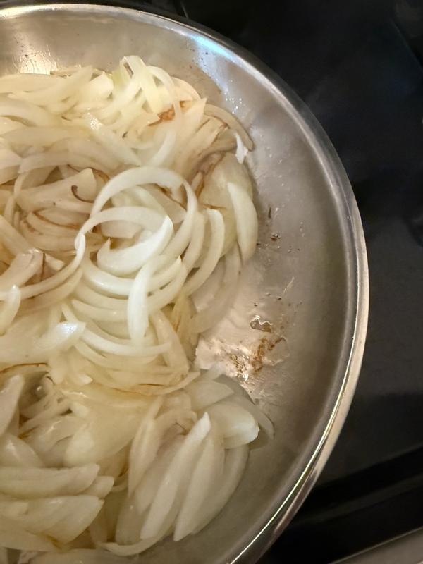 Functionality: works like it’s supposed to. Heats up well. The set is beautiful and shiny and it is so far nonstick butttt I fried some onions and used oil so that it wouldn’t stick and already after the first use I couldn’t get the pan completely clean. You can see in the picture that there is what looks like either an oil stain or like the coating came off. I’m not too pressed though since it was free and the set literally has every pot/pan size you can think of.