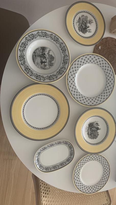 Audun Ferme is a beautiful pattern. The open stock china has many serving pieces to accompany the place settings. This pickle dish can also work as a butter dish. This pattern also has coordinating patterns for interesting combinations. I received this piece in perfect condition and very quickly. Excellent service from Bloomingdales!