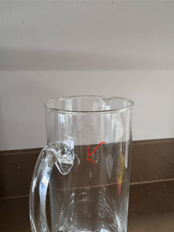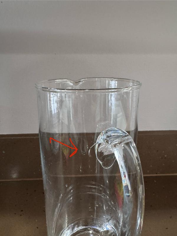 Purchased this is September to use for the Holidays. Used it for the first time on Thanksgiving for ice water. There are now visible cracks around the top of the handle...after one use. Did not put in the dishwasher either. And it's too late to return. I don't dare use it again. I am not happy!