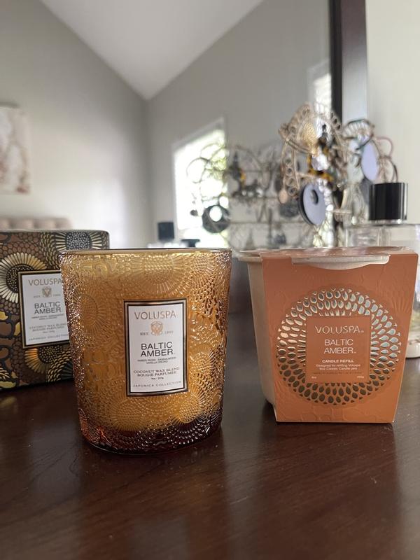 There are so many beautiful scents Voluspa has to offer but Baltic Amber will ALWAYS be my go to scent. It fills my home with warm sensual aromas that make you want to grab your favorite blanket and curl up.