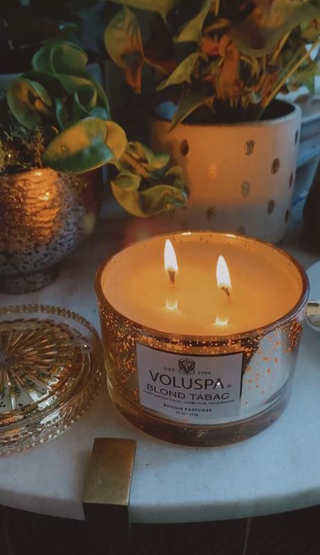 Blond Tabac is my absolute favorite fragrance, no matter what the occasion. The fragrance throw is very noticeable, yet subtle. It fills the room the moment the wax begins to pool. The vessel is spectacularly beautiful and only becomes more so, day after day of lighting the candle as it so very slowly burns down. Through and through, this is my absolute favorite Voluspa candle.