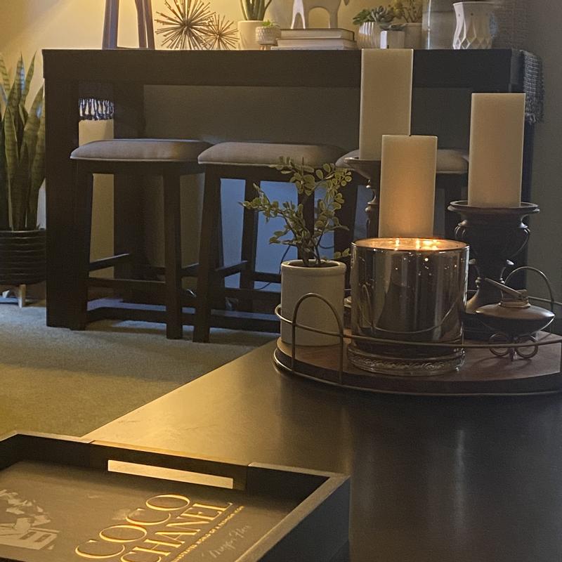 My absolute favorite candle - the mercury glass has a soft glow when lit and it’s absolutely beautiful- the scent is sophisticated and room filling without being overwhelming I have all the different sizes but the three wick is my favorite for our grand living room
