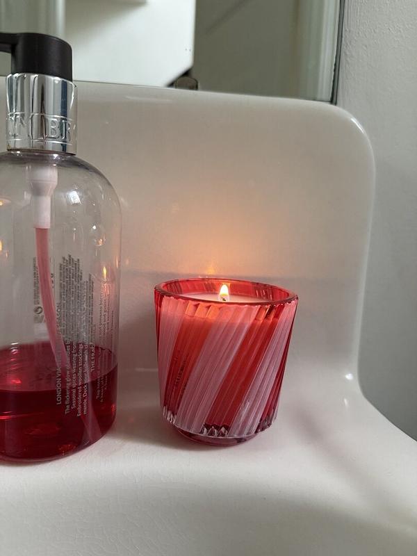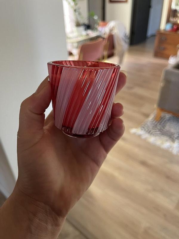 The glass alone is so lovely as holiday decor and the smell is minty sweet. I bought several of these for gifting at work and many of my colleagues loved the scent and look of this candle. I would buy this again, especially as a gift.