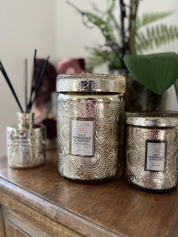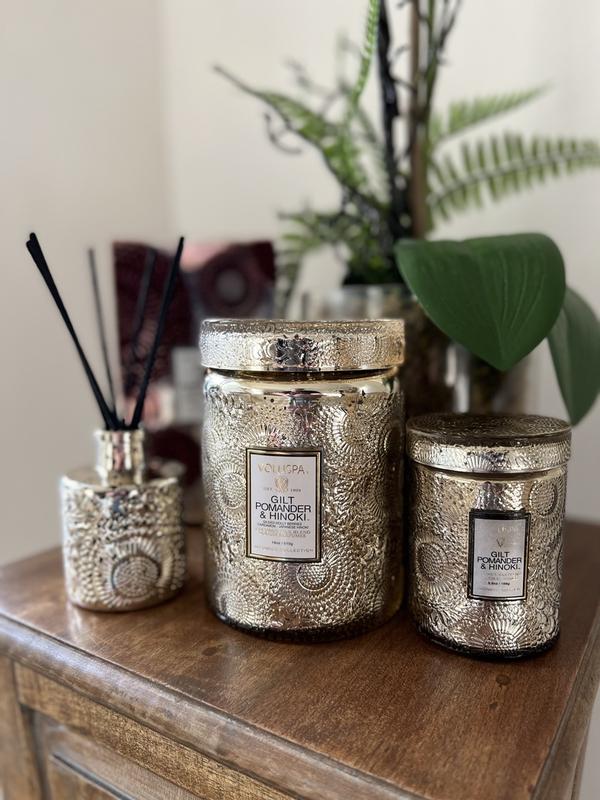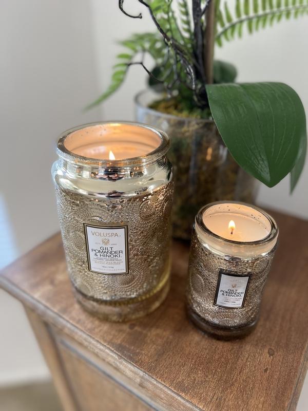 Gilt Pomander & Hinoki is my favorite bedroom scent. Volupsa candles are the only candles that you really get the true scent and it lasts!