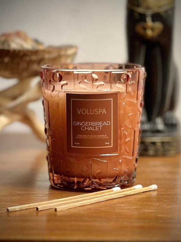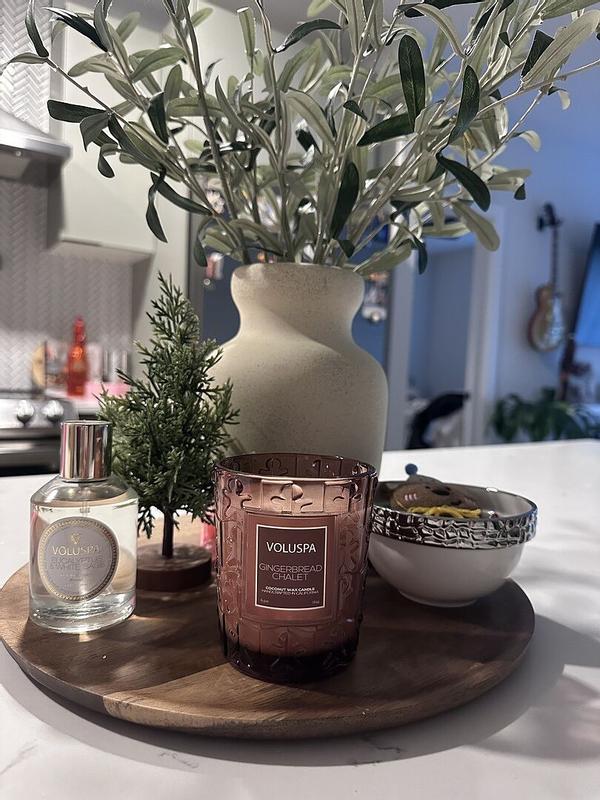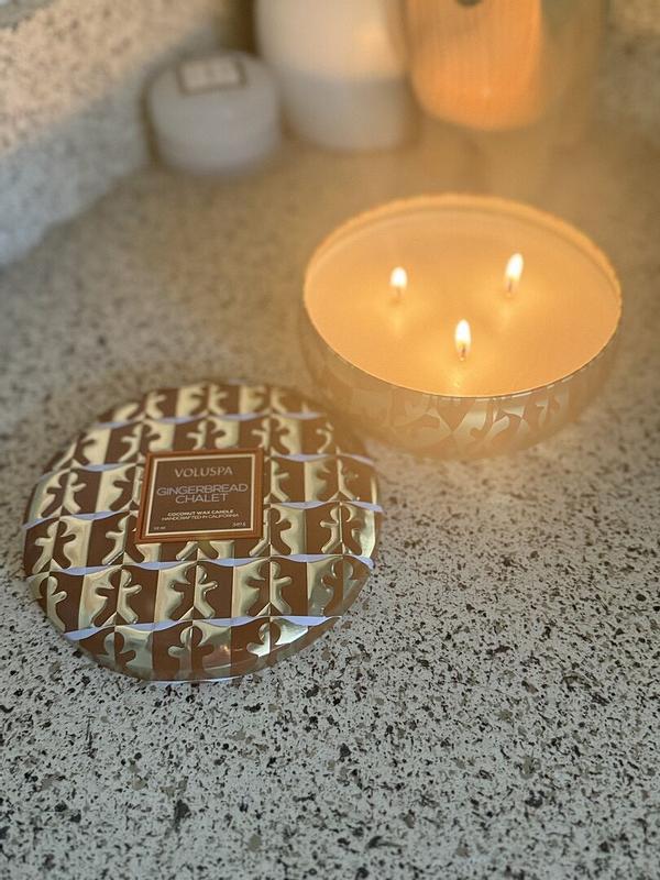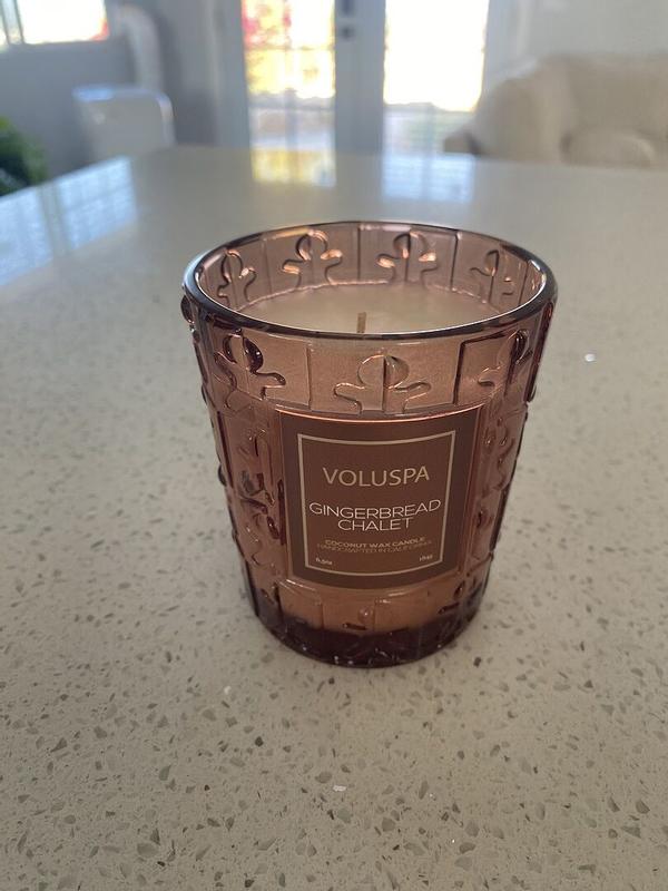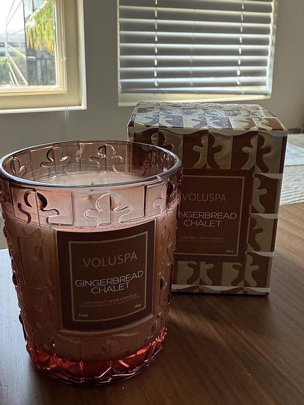Love, love, love this holiday candle! My whole downstairs of my house smells of Christmas gingerbread! It is such a warm, cuddly smell that makes you want to light a fire & read a good book while wrapped in a cuddly blanket. I love all of the Voluspa candles, but this is my favorite holiday scent by far! The display of beautiful colors & cute artsy gingerbread people on the outside of the candle make it a super cute centerpiece or living room decor. I will buy again in the future!