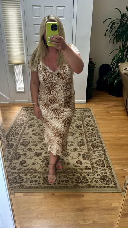 I bought this matching set and sooo sooo happy with it! What a great Summer into Fall transition outfit! It was a compliment grabber and fits perfectly. True to size skirt wise. Top runs a little smaller.