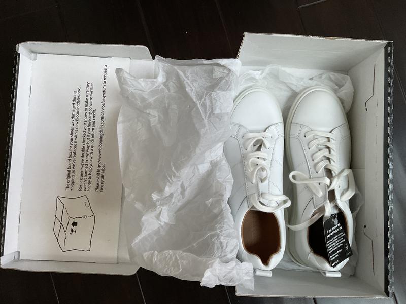This review is not about the sneakers in-of-itself but about the care and presentation of this package and how the sneakers arrived. This is the second pair of sneakers I ordered because the first one that came, had a lot of black marks on them and was in a tattered Bloomingdale’s box just like the one in this photo. I contacted customers re: the issue and another pair was shipped out to me. The problem, the second pair arrived looking worse than the first. Call me picky but when I spend money on a product, I expect it to look new. These sneakers that arrived (literally a few minutes ago, June 2, 2025 at approximately 7: 10 pm) looked as though someone tried them and the sales associate chose that pair to send me. The lace also looks like they are used. While ordering items online is convenient, the customer service with packaging is a miss 9/10. I like the sneakers but I will not keep them simple because of how they arrived, the package and the blatant disregard to me, the customer.