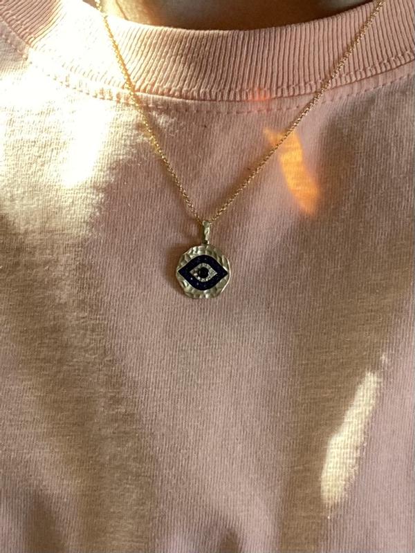 ⭐️⭐️⭐️⭐️⭐️ Absolutely Stunning Necklace! I purchased the White Diamond, Black Diamond, and Blue Sapphire Evil Eye Pendant Necklace in 14K Yellow Gold (18”)—and it is absolutely stunning! The craftsmanship is exquisite, and the mix of white and black diamonds with the deep blue sapphire creates such a captivating sparkle. The gold chain has a beautiful shine and the length is perfect for layering or wearing alone. It’s elegant, meaningful, and truly a statement piece. I’ve received so many compliments already. Highly recommend!