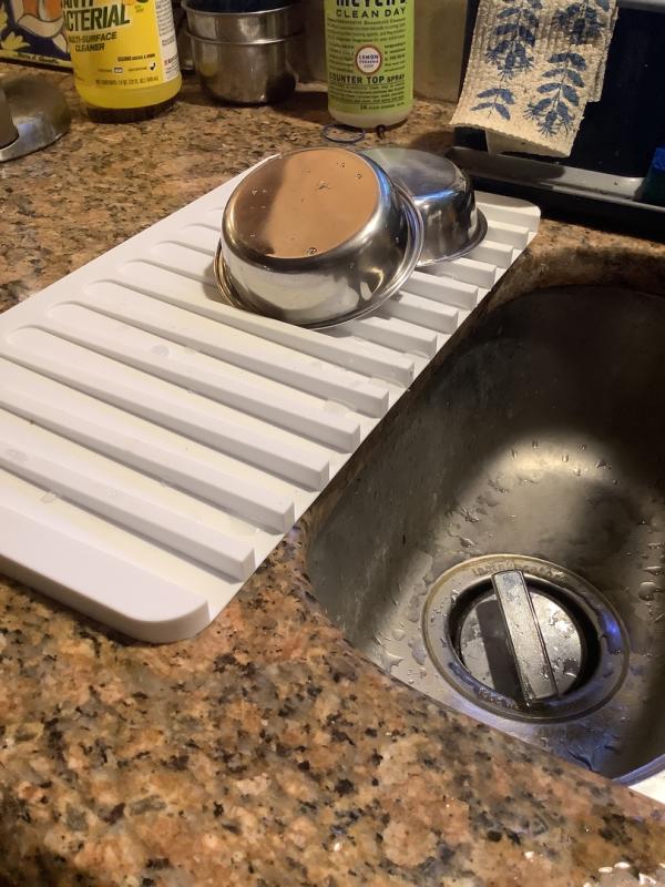 For my tiny kitchen,I’ve been looking for something to place in the space between the wall and my sink to hold newly washed items while they drain. I’d tried a folded dish towel and paper thin sponges, but both options became moldy or smelly or allowed items to slide around. This drainer is the perfect solution! Water droplets drains back into the sink, nothing moves from its place and with the raised grooves, everything dries more quickly and the silicone doesn’t retake n smells.By chance, the size of the drain is exactly the width of the space.