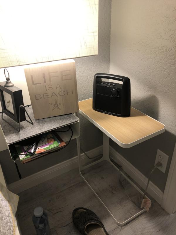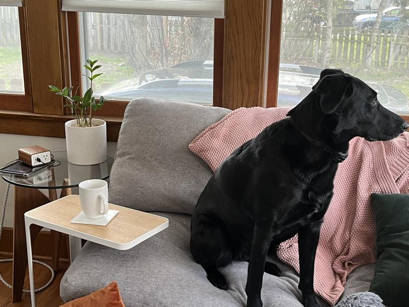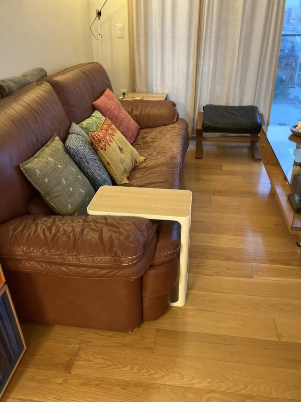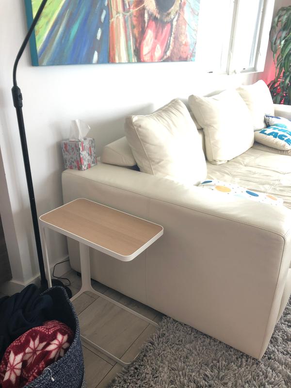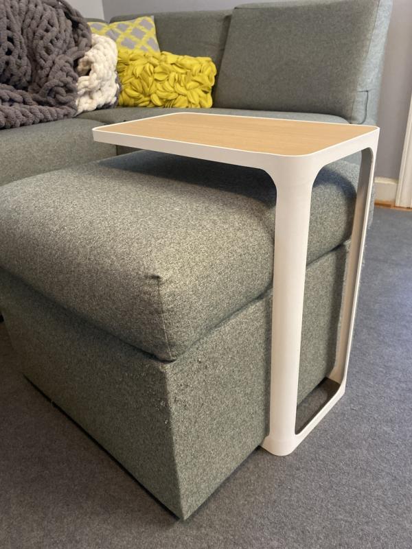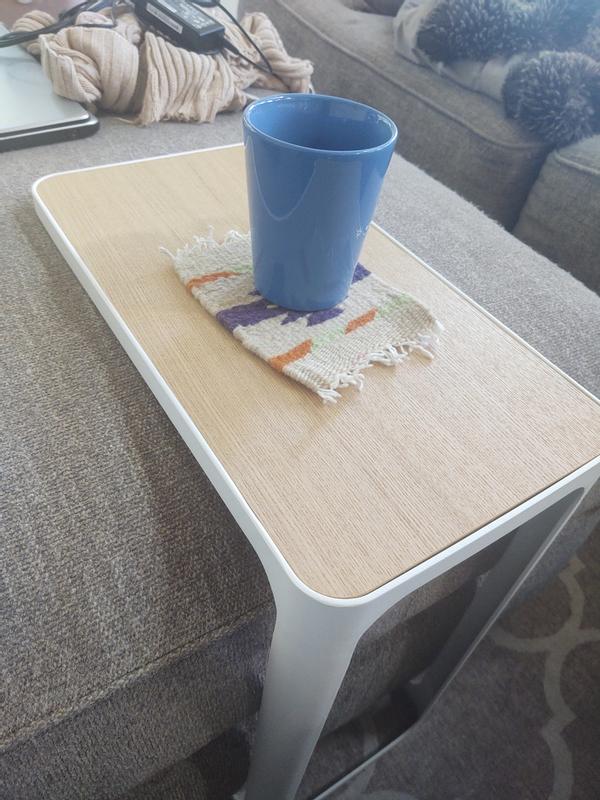 Great little side table that slips over the seat of the couch for more functionality.