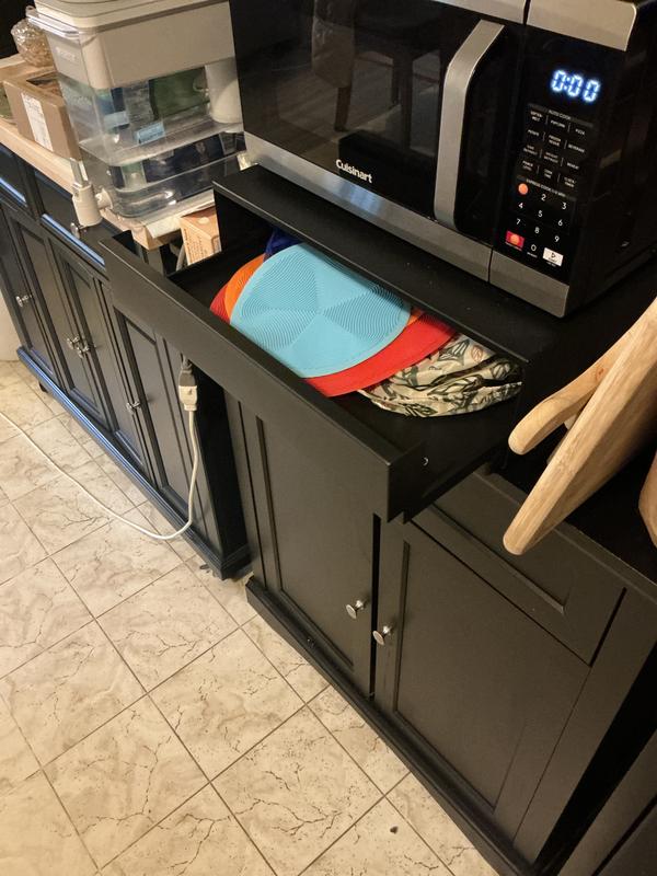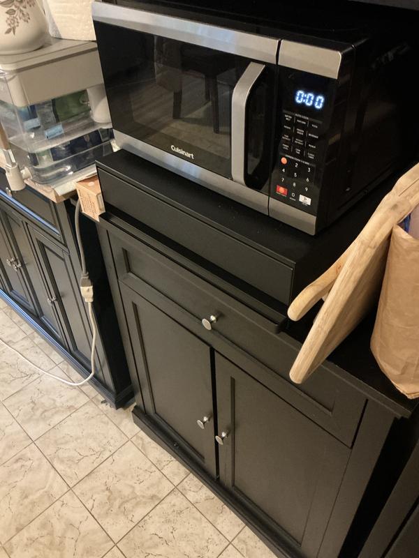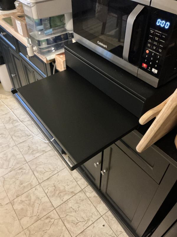 This is great for our coffee station. The shelf gives us extra room to pour coffee into our cups and the drawer holds extra filters and bags of coffee. Really sleek and nice looking!
