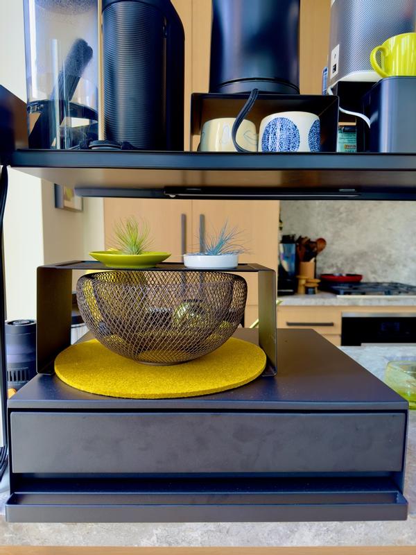 Love this! I can’t get enough of my Yamazaki home items. I have been addicted to the website and go on it weekly. I have a list of items that I will be adding to my collection. This drawer is elegant and utilitarian at the same time. It has a modern, chic, and industrial feel and is easy to put together. The steel makes it feel sturdy well made.