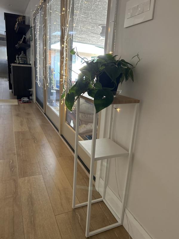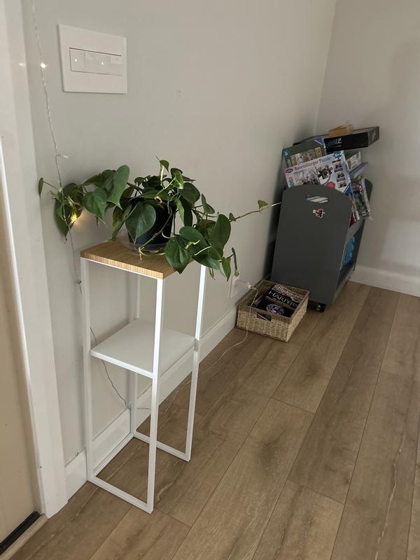 I love the design of this stand. It is perfect for holding our humidifier. I do wish it was a bit more sturdy though.