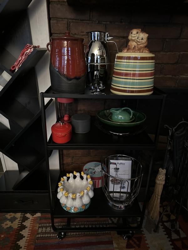 This cart is such a useful addition. My husband is ill, and I use it for the supplies he needs. The lowest shelf has enough distance between it and the second shelf that liquid containers or sprays fit standing up. This would be a great addition in a kitchen or laundry room as well as useful for college students.