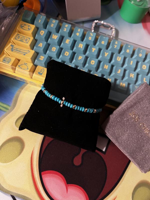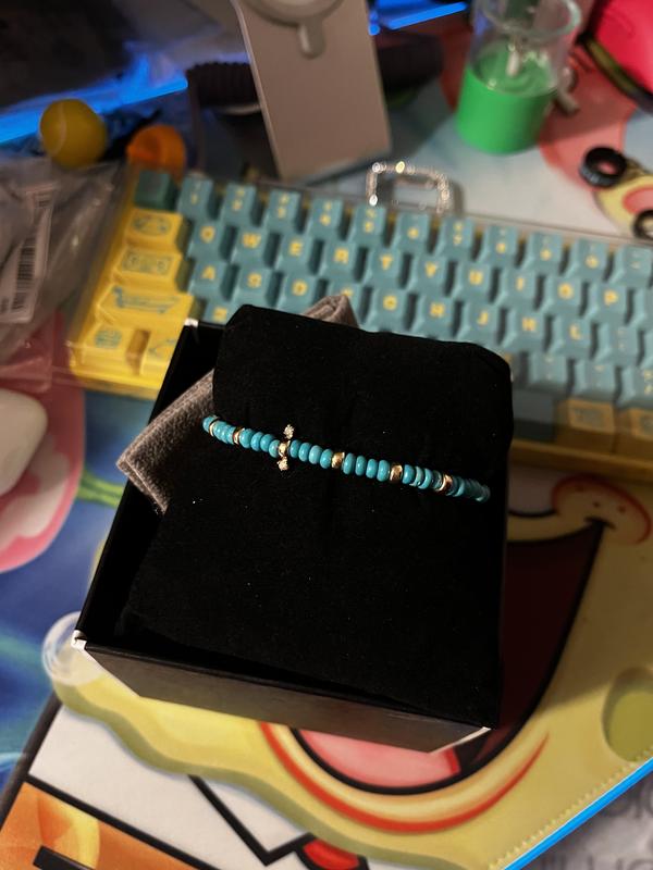 14K Yellow Gold Gemstone Beads Turquoise & Diamond Bracelet