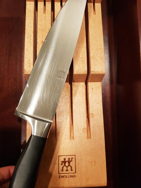 A great addition to our other Zwilling knives. Good balance; precise cutting, and exceptional sharpness. Enhances our food preparation.